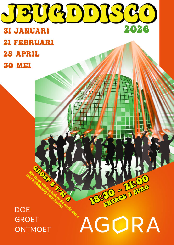 Wil je lekker dansen en meezingen op de liedjes die jij leuk vindt, kom dan naar jeugddisco dagen in de tot disco omgebouwde theaterzaal van Agora. Vraag je favoriete liedjes aan bij de DJ en maak er een gezellige dansavond van!
