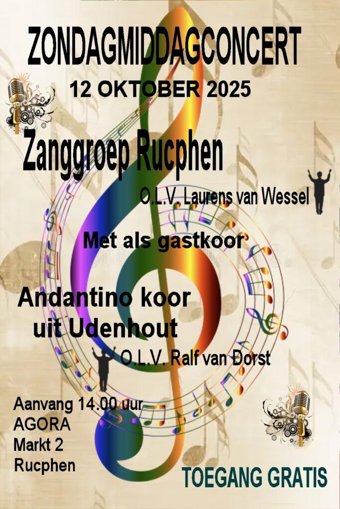 Op zondagmiddag 12 okt vindt er een uitwisselingsconcert plaats met het koor Andantino uit Udenhout en Zanggroep Rucphen .