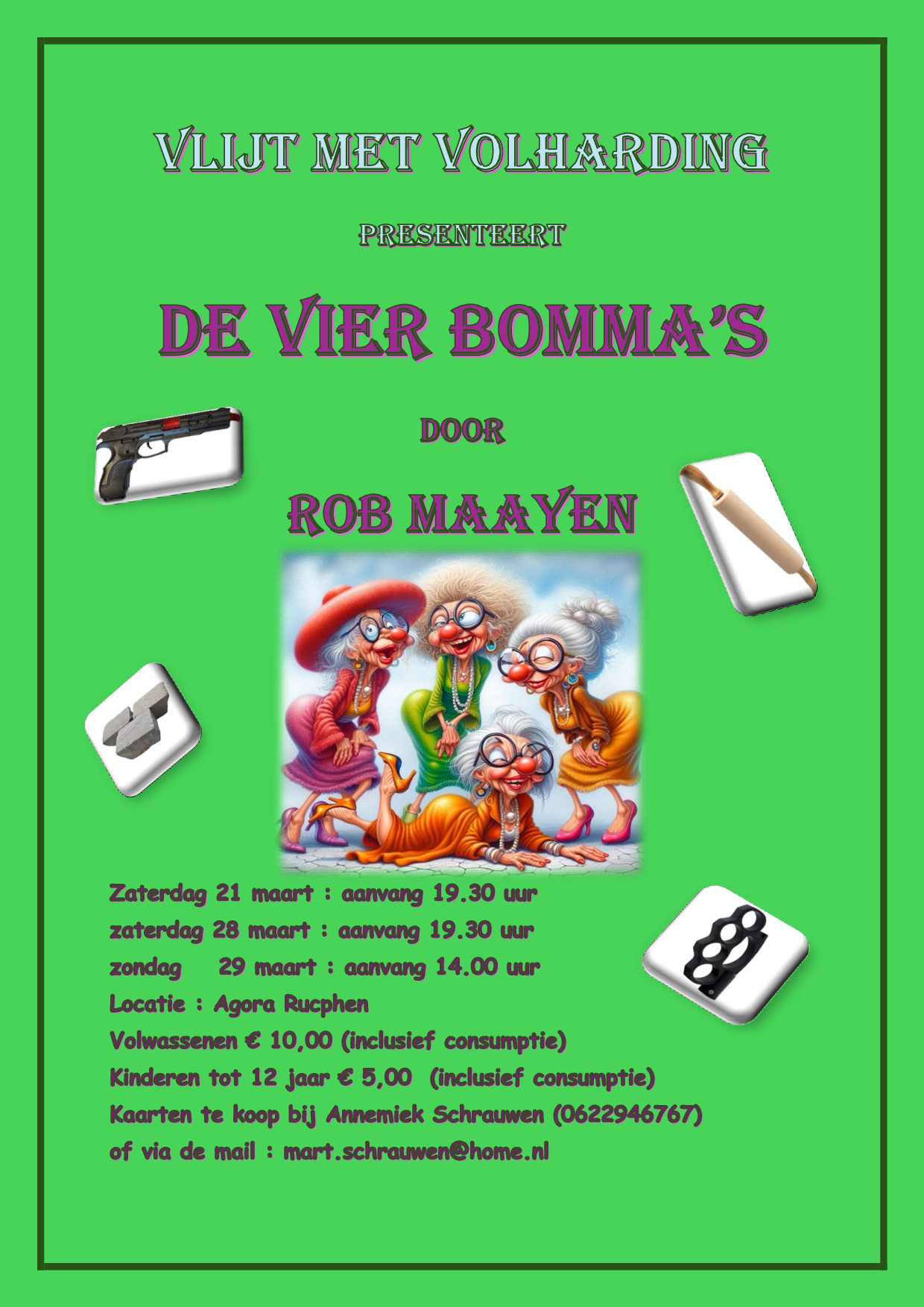 Kom 21, 28 of 29 maart naar Agora Rucphen om te zien of hoe de actie van de 4 Bomma’s afloopt…..